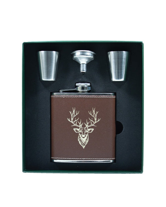 Bisley 6oz Brown Genuine Leather Flask Sets